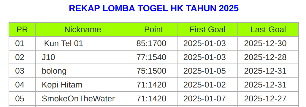 REKAP LOMBA TOGEL HK TAHUN 2025
